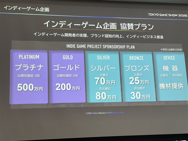 続いてはインディーゲーム企画について。本企画はスポンサー・協賛の支援により実現するものとなる。