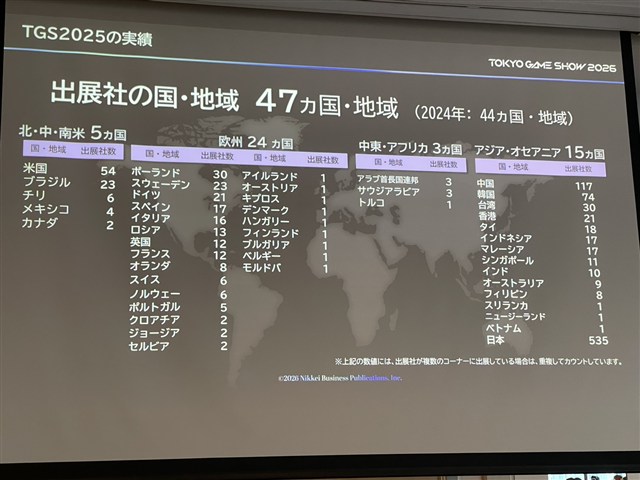 「東京ゲームショウ2025」の出展社の半分以上は海外企業となっており、井口氏の挨拶でも述べられていた通り、同イベントが如何にグローバルなものになってきたかが伺える。