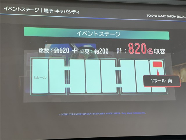 イベントステージは1ホール南に最大820名規模を収容できるスペースを用意。リアルならではの緊張感や、熱量を伴った情報発信を期待できる場として提供する。