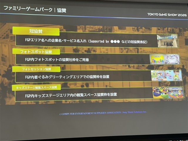 そのほか、ファミリーゲームパークではゲーム関連企業に加えて、一般企業(非ゲーミング企業)からの協賛プランも用意している。