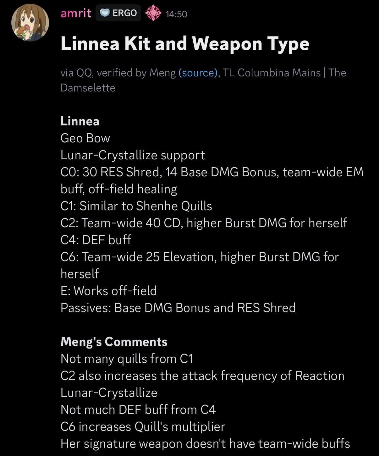 リネアのキットと武器の種類(QQ、Meng 経由)