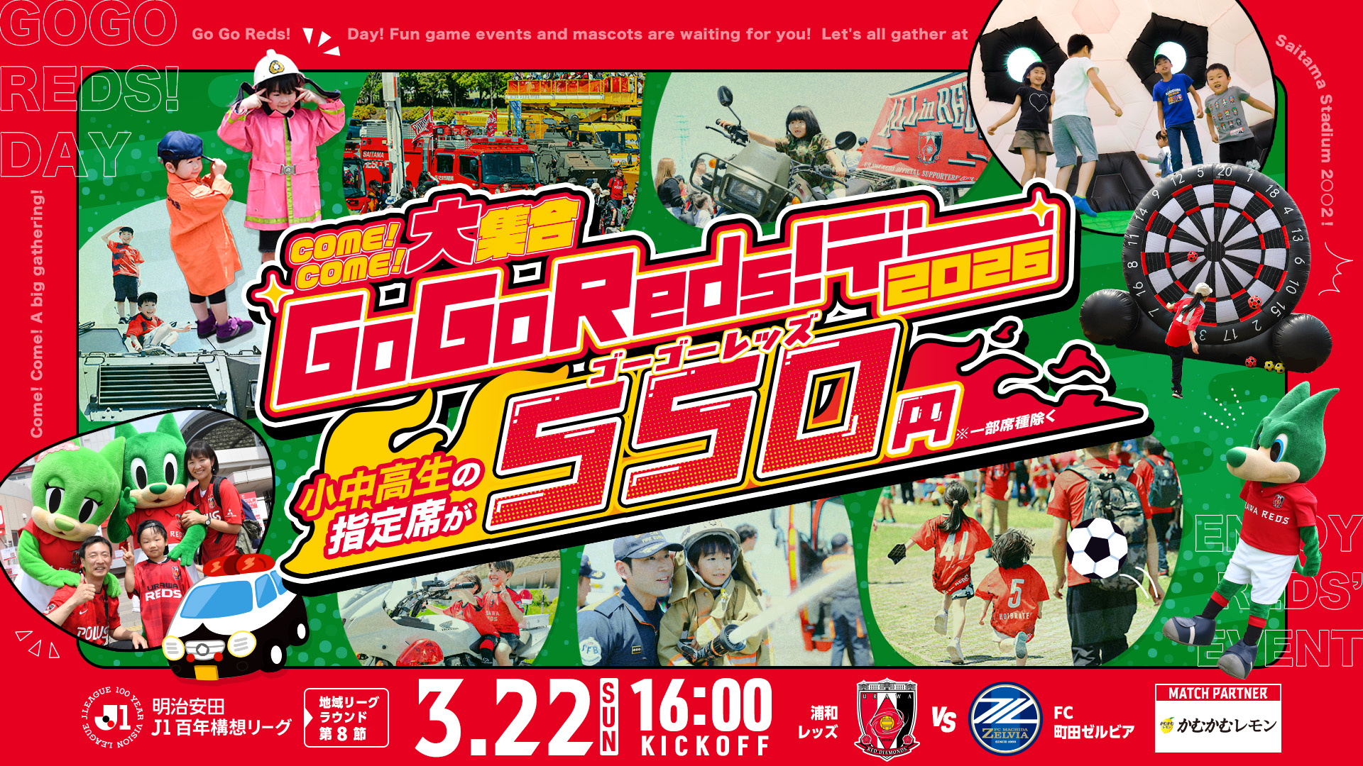 3月22日(日)FC町田ゼルビア戦【MATCH PARTNER かむかむレモン】は『GoGoReds!デー』!