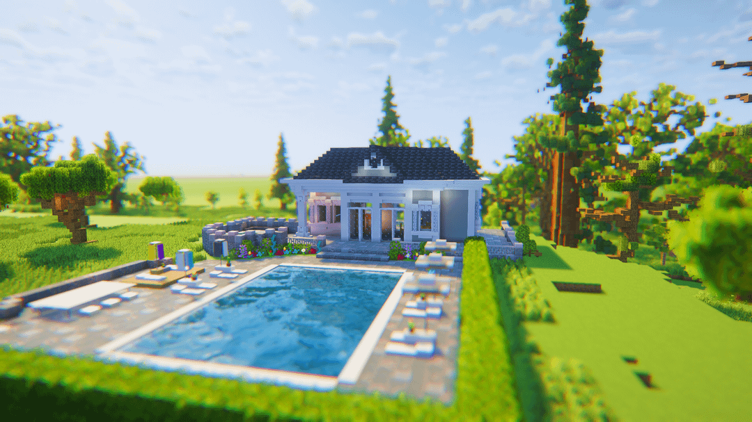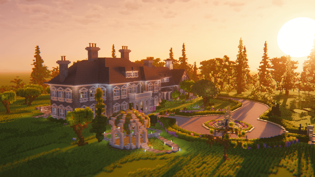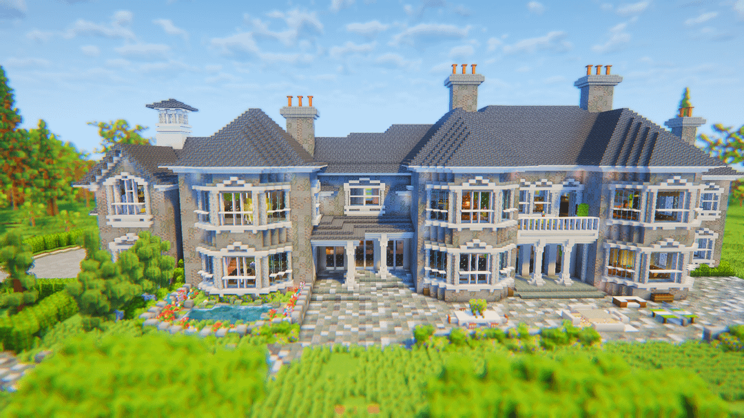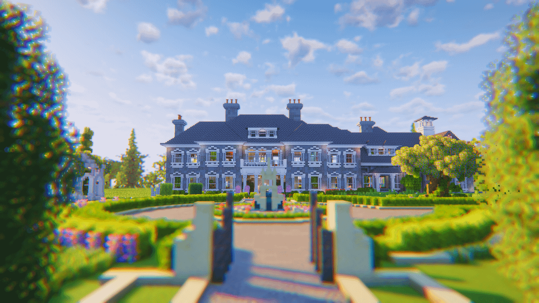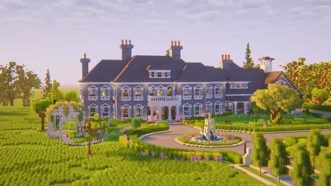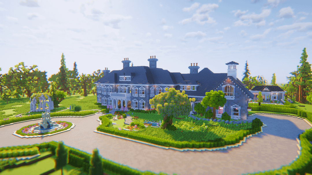 実際の建築をもとに建てられたこの家は、精緻な石壁、複数の煙突、中央にあるバルコニーの入り口が特徴で、古い貴族の雰囲気を醸し出しています。周囲の造園は完全にカスタムで、生垣、花、噴水の中庭、パーゴラエリアがあり、生き生きとしたリアルな雰囲気を醸し出しています。