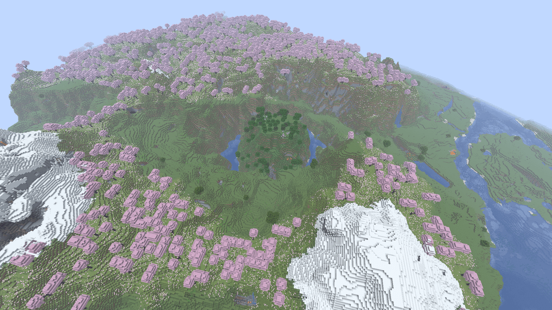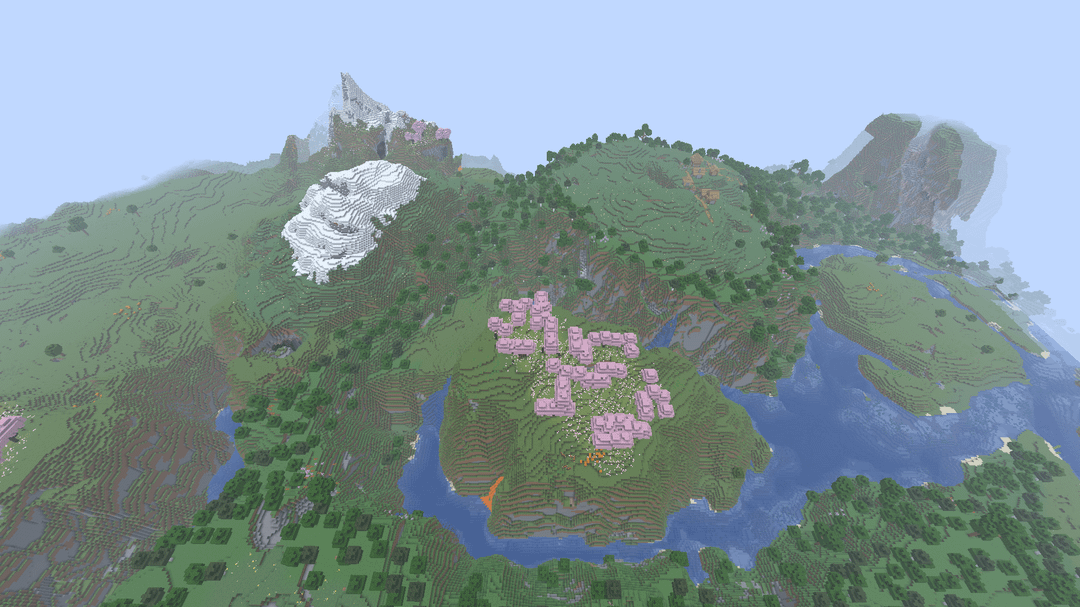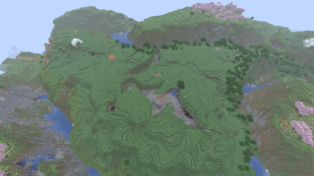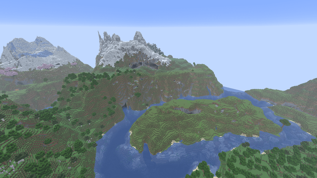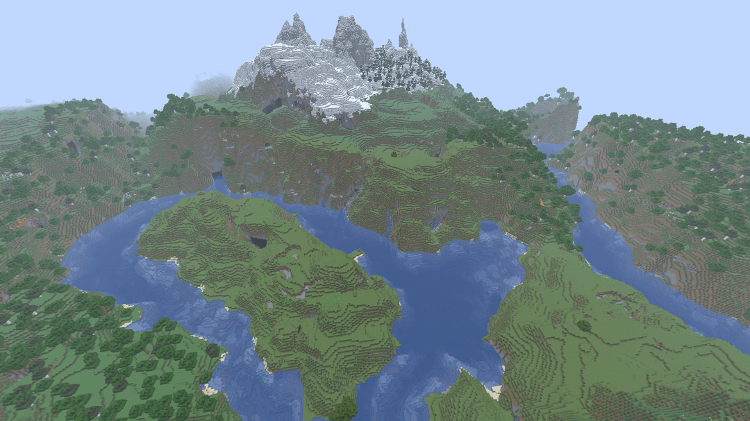 – スポーン時に水に囲まれた単一の丘/山 (城に最適)