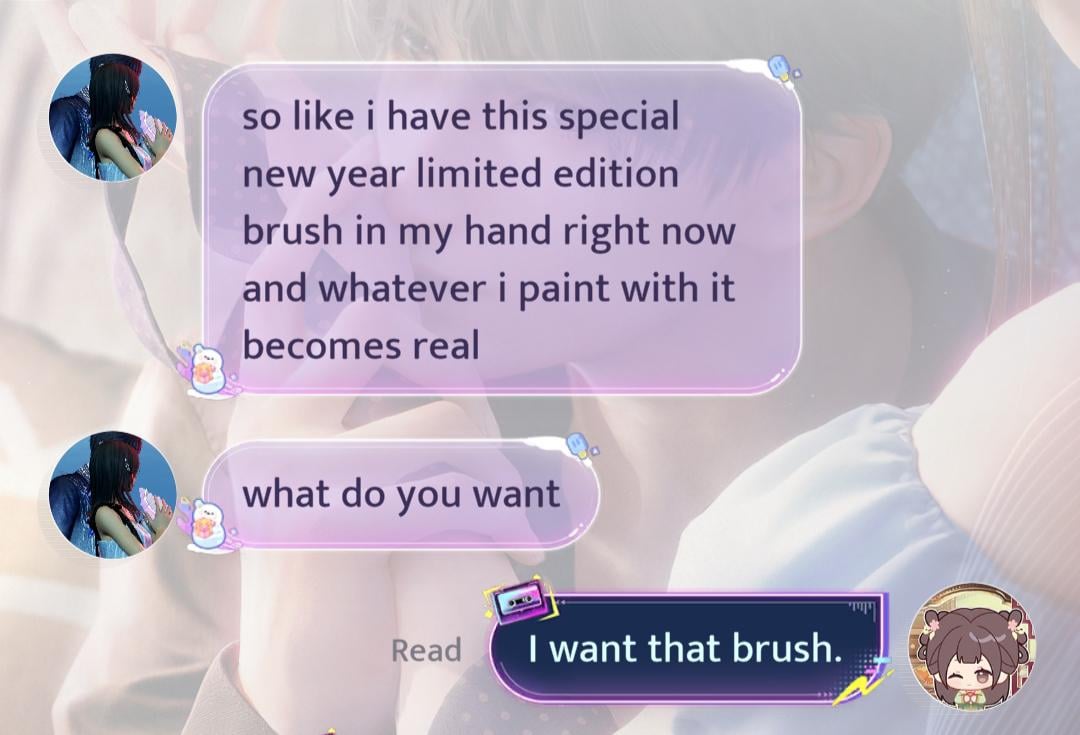 私はテキスト機能をあまり使いたくないのですが、自動応答の読み込みに時間がかかりすぎ、その半分は実際に会話が進むまで意味が分からないからです。でもそれはさておき、ラファエルのことになるとやはり面白すぎます、なぜなら彼のタイプの仕方が私を泣かせてしまうからです 🤣🤣🤣🤣 by xerxesblanche