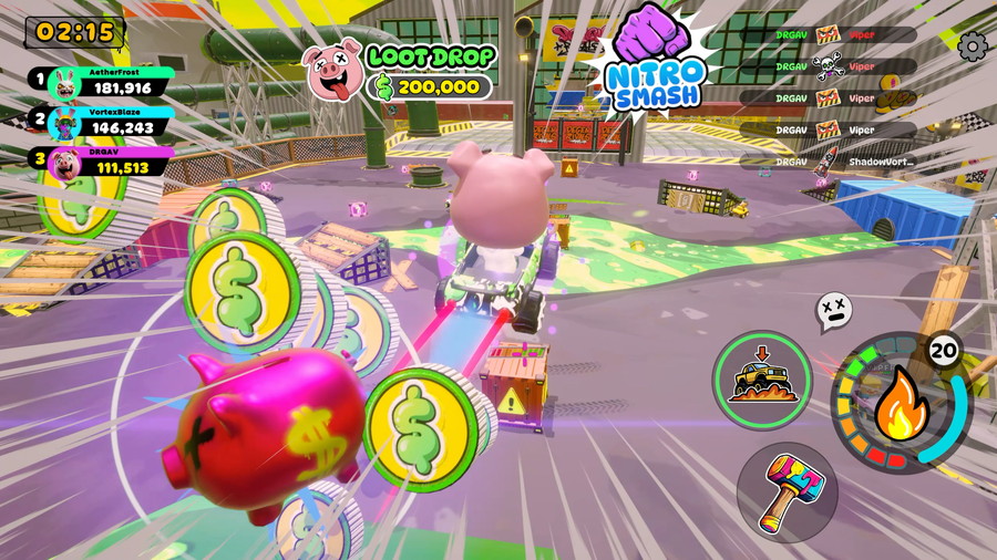 コアとなるバトルロイヤルモードでは、ライバルを破壊し、迫りくる “The Crush” から逃げ切って最後の1台になることを目指す。また、”Cops n’ Robbers”、”Loot Smash”、”Order Up!” といったDemolition Partyモードで戦術を試すことができる。ビートダウンの合間には、ラボで自分だけのユニークなアバターをDeGenerate(生成/変異)させ、ガレージで無限の組み合わせでマシンをカスタムすることが可能だ。