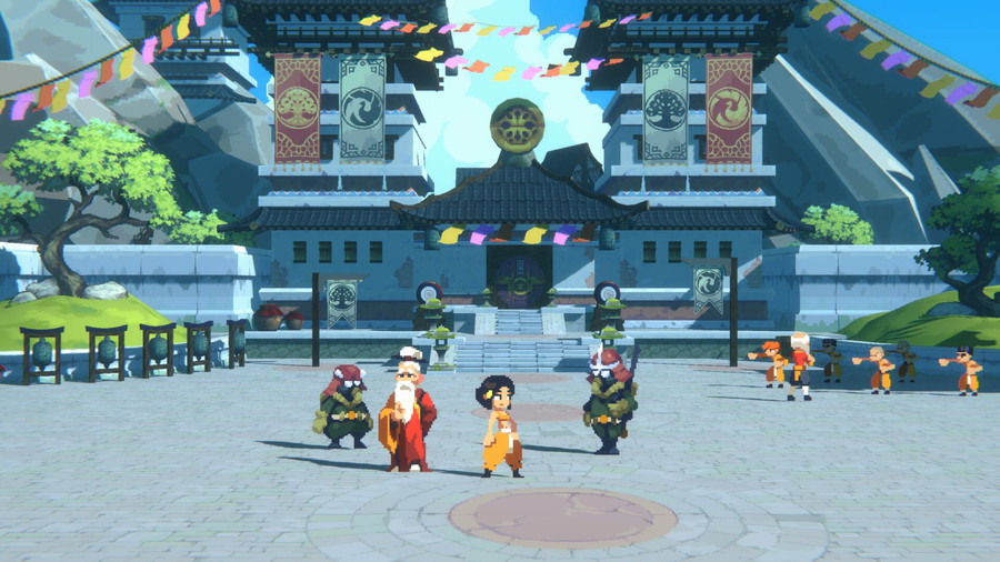 ・印象的な2.5Dビジュアル: 完全な3D環境を背景にしたピクセルアートのキャラクター