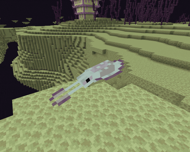 の コーラルイカ (最初のモブ) は、コーラスフラワーを食べ、それに触れるものをテレポートさせるパッシブモブです。それは落ちるだろう "合唱ゼリー"、雪玉を使って合唱用のゼリーボールを作ることができます。ゼリーボールは、コーラスフルーツを消費した場合の効果と同様に、当たったものをテレポートさせます。