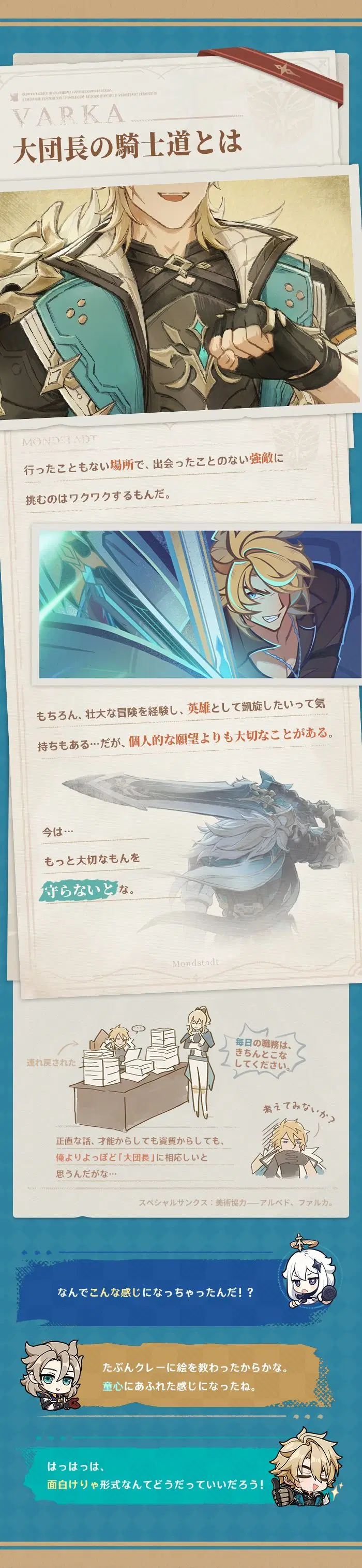 「本書は、西風騎士団『大団長』ファルカに関する事実を読者に知っていただくことを目的として書かれたものである。」