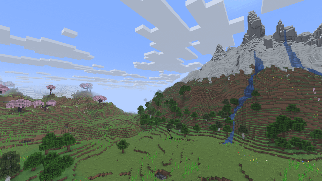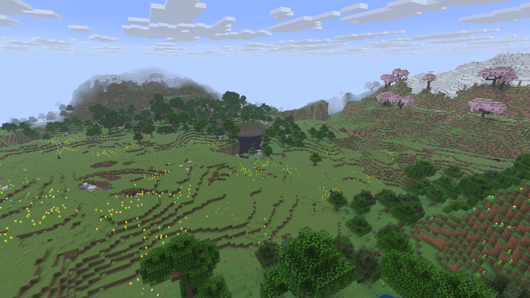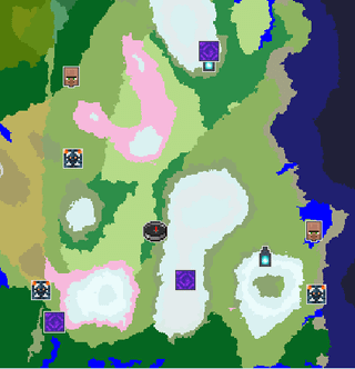 高い雪山と桜の木立に囲まれたひまわり平原と花の森。坑道と試験室のある大きな洞窟も含まれています