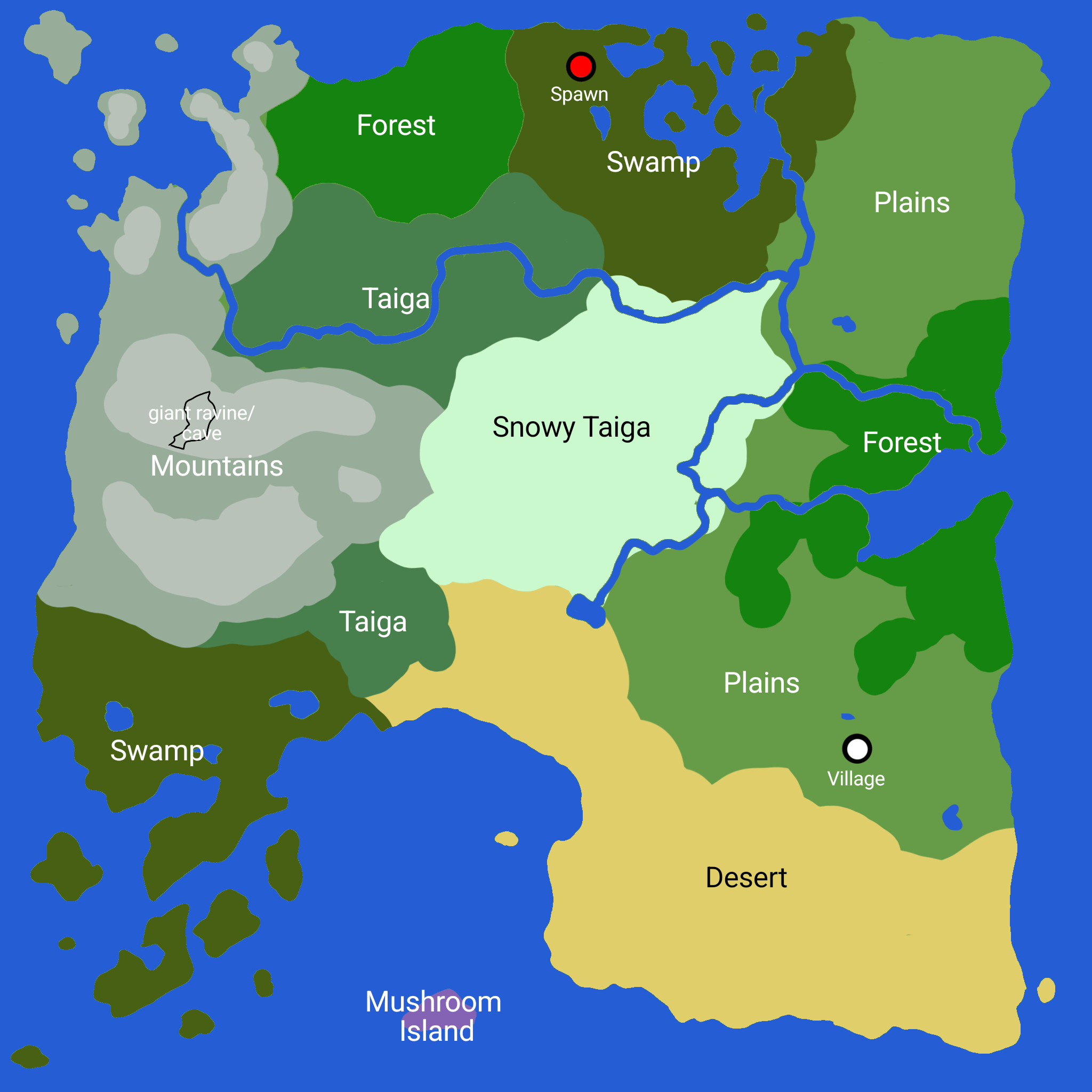 絞り込むために、いくつかのことを明確にする必要があります。ワールドは 2014 年の 8 月頃にゲームの Xbox 360 版で作成されましたが、ゲームは私のコンソールでは TU11 にのみ更新されていませんでした。つまり、このシードは TU11 ワールド生成で作成されたことになります。 (私がこの地図を見てから 6 年も経っているので) 主に川や正確な土地の形状が完全に正確ではない可能性があるため、この地図には多少の傾きがある可能性があります。特に北西部の内陸地域については、私はあまり探検したことがありませんでした。見た目を再現するよう最善を尽くしましたが、間違いがある可能性があります。うまくいけば、それが見つかる可能性のある十分に近いところにあります。破損する前に最後に保存した場所の小さなアイコンがまだ残っていると思うので、それを見つけたら、少しでも役立つ場合は更新を投稿します。