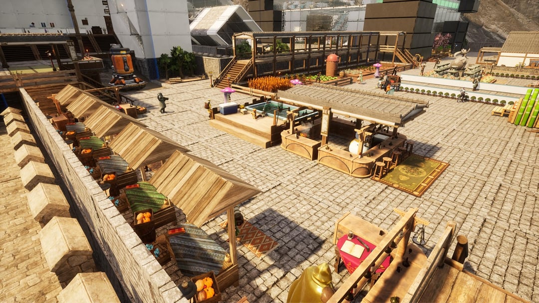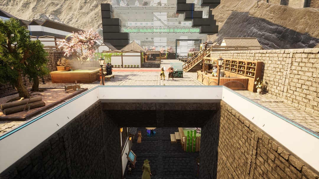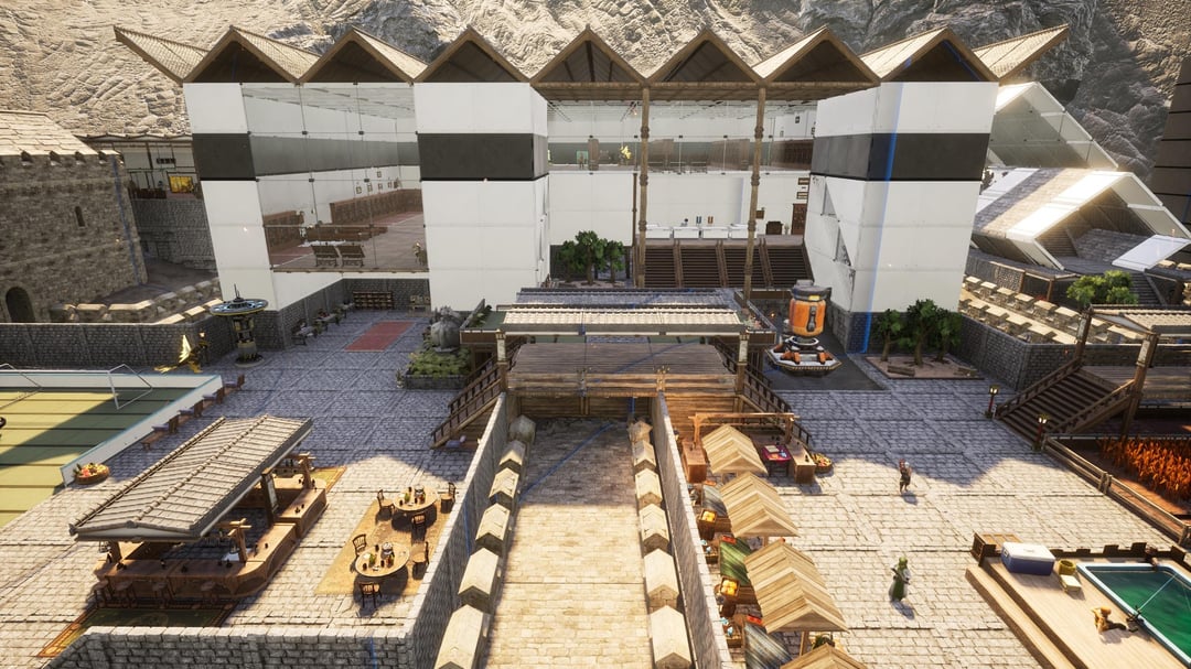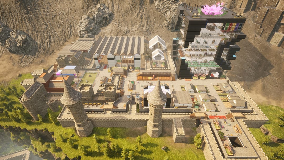 私のビジョンは、非常に機能的なマルチベースでありながら、可能な限り活気を感じられるコミュニティを遺跡の上に作ることでした。自然石の遺跡と対照をなすように、構造物をモダン/未来的な外観にすることにしました。このビルドにもっと命を吹き込むために、さまざまなタイプの建材や塗装色を (やりすぎずに) 含めるように努めました。