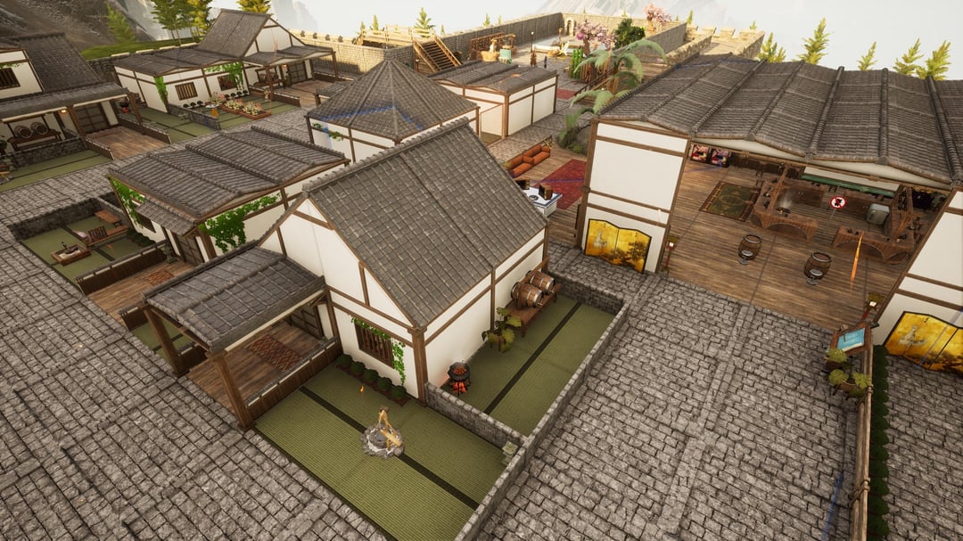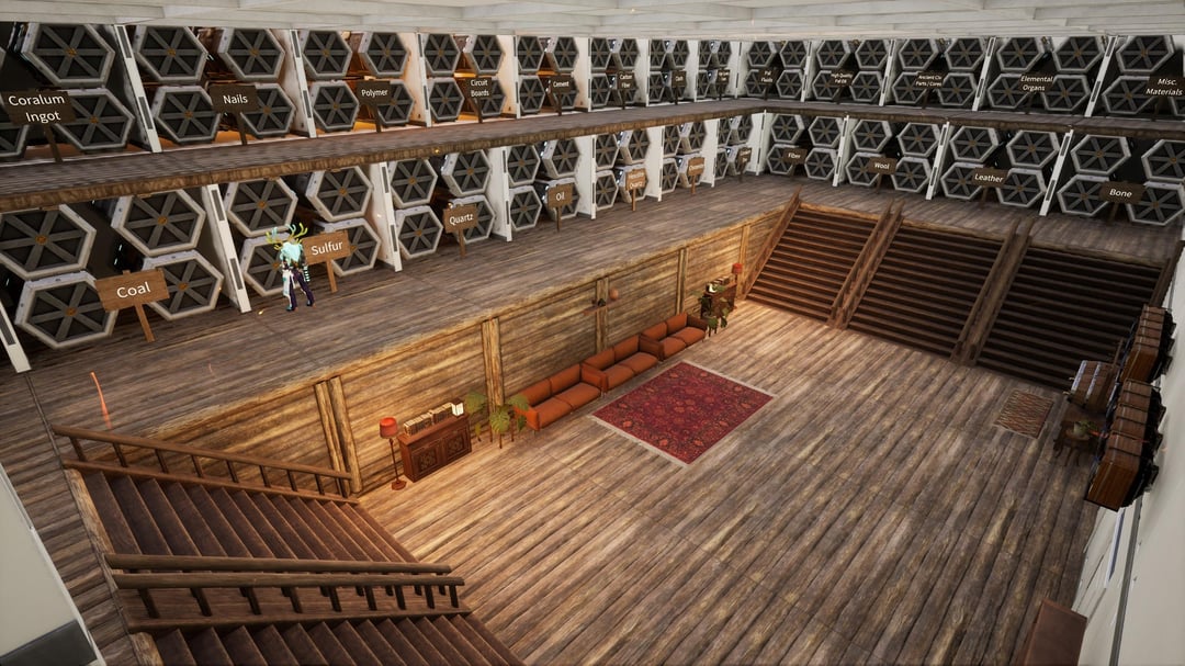 この基地には「地下」セクションもあります。エリアを使用できるようにするために石の屋根の部分を取り付けるために、最初に柱/基礎のネットワークを作成する必要があったため、追加の構築にそれらの柱/基礎の周囲の領域の一部を使用することにしました。このセクションには、考えられるすべての資材を保管する保管庫 (工場までつながっています)、武器や装備を保管する武器庫、そしてこの構築の私の個人的なお気に入りの部分である日本の居酒屋をモデルにしたバー セクション (近所までつながっています) が含まれています。