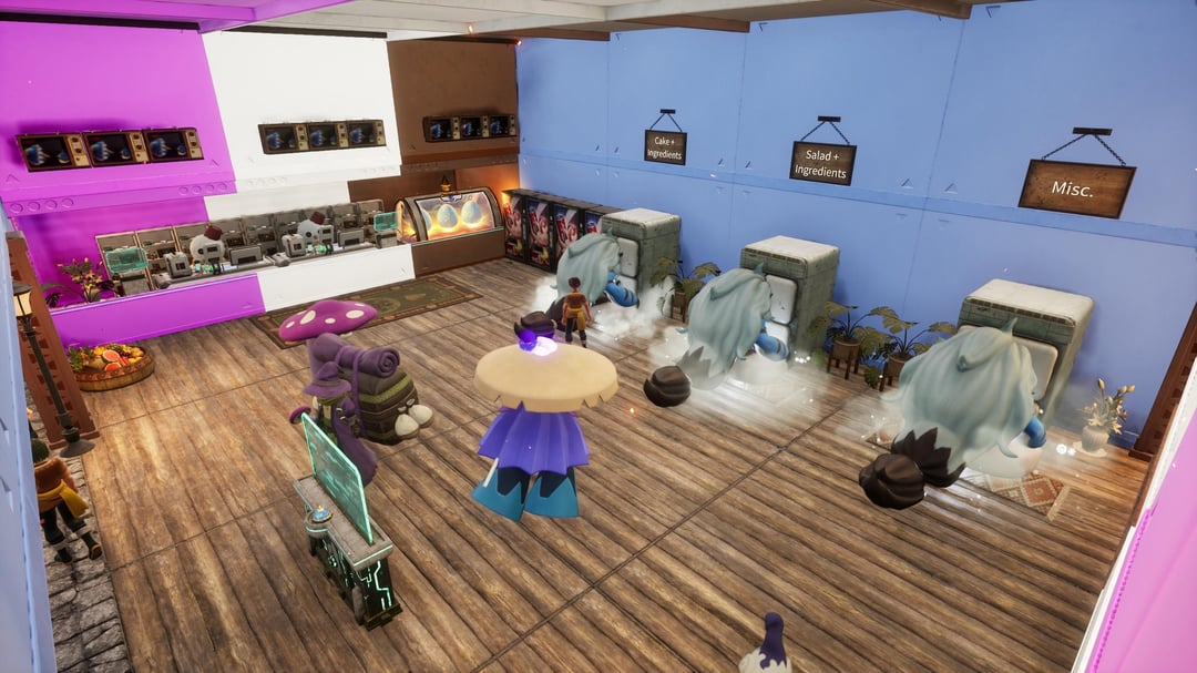 このビルドの機能には次のものが含まれます: 採掘/生産工場 (もう一度叫びます) u/ヴィレストリド- これはデザインのインスピレーションの源です)、私の回路図と仲間のトレーニングアイテムのためのライブラリ、あらゆるものを調理するためのベーカリー、私の冷蔵食品を保管するための「アイスクリーム」ショップ、仲間の手術のためのブラウン博士のための風変わりな病院、商人の売買のための町の中心部、そして私のNPC住宅のための住宅地です。