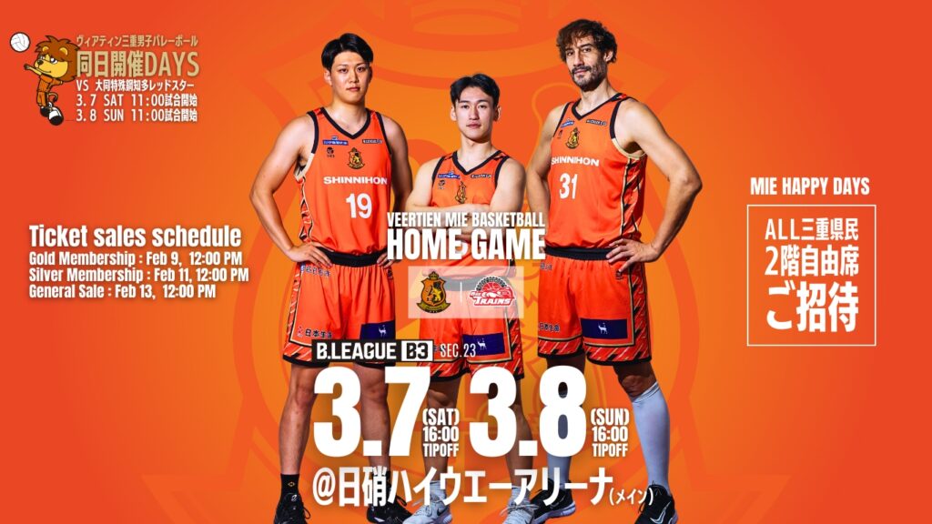 3月7日(土)・8日(日)に開催されます、B3リーグ第23節 ヴィアティン三重VS八王子ビートレインズの試合へ、