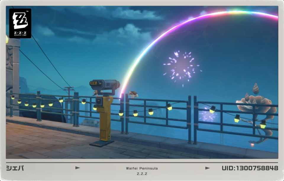 ストーリーの1つをクリアしたところ、打ち上げ花火の撮影スポットに案内された。低画質モードでも気にならない美しさだ。Copyright c COGNOSPHERE. All Rights Reserved.