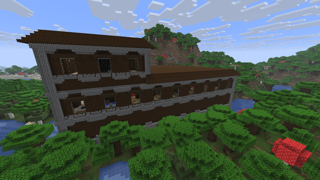 私の最新のサバイバル ビルドでは、自然に生成された森の邸宅をすべての村民と敵対的な暴徒を追い出した後、平原の村のスタイルに改装しました。 これは、建物内に村人を収容して正式な貿易会場にするためでした。また、3 階は 1 部屋しかなかったので、空きスペースを埋めるために邸宅の上に機能的な村を建てました。 by demonjoeTV