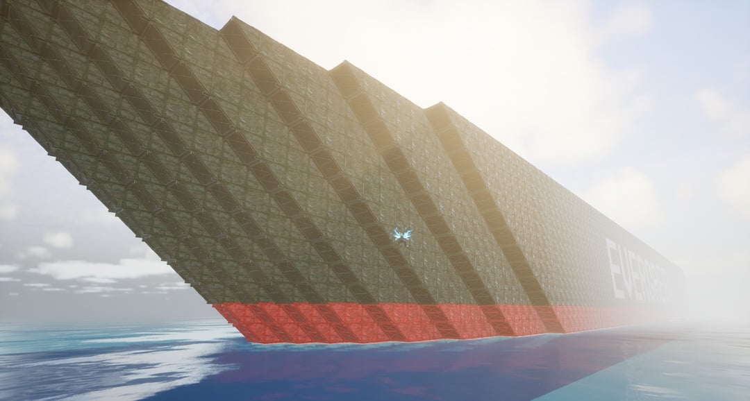 船体しか作っていないのであまり自慢することはありません。マップの端(かなり端に近い…)に建っていたので360度海に囲まれており、それが初期段階で気付けなかった問題かもしれません。周囲に識別できる陸地がないため、船の巨大なスケールを伝えることができません。