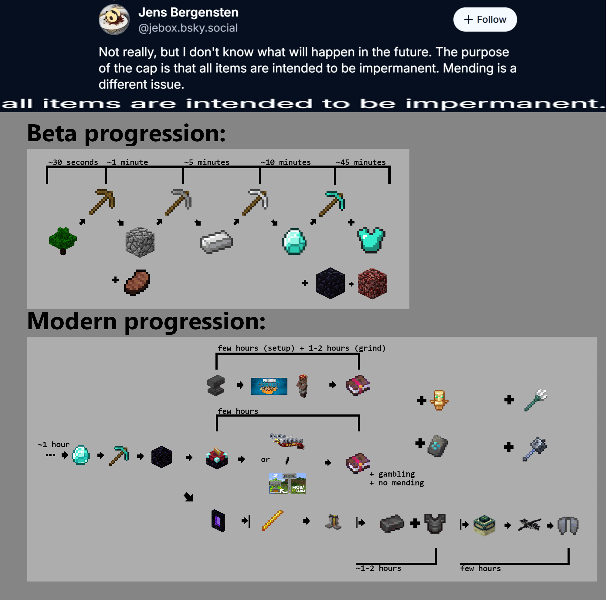 最近ジェブは Bluesky でツイートし、アンビルのレベルキャップに関する質問に答えました。彼は言いました "すべてのアイテムは永続的であることを意図しています"。