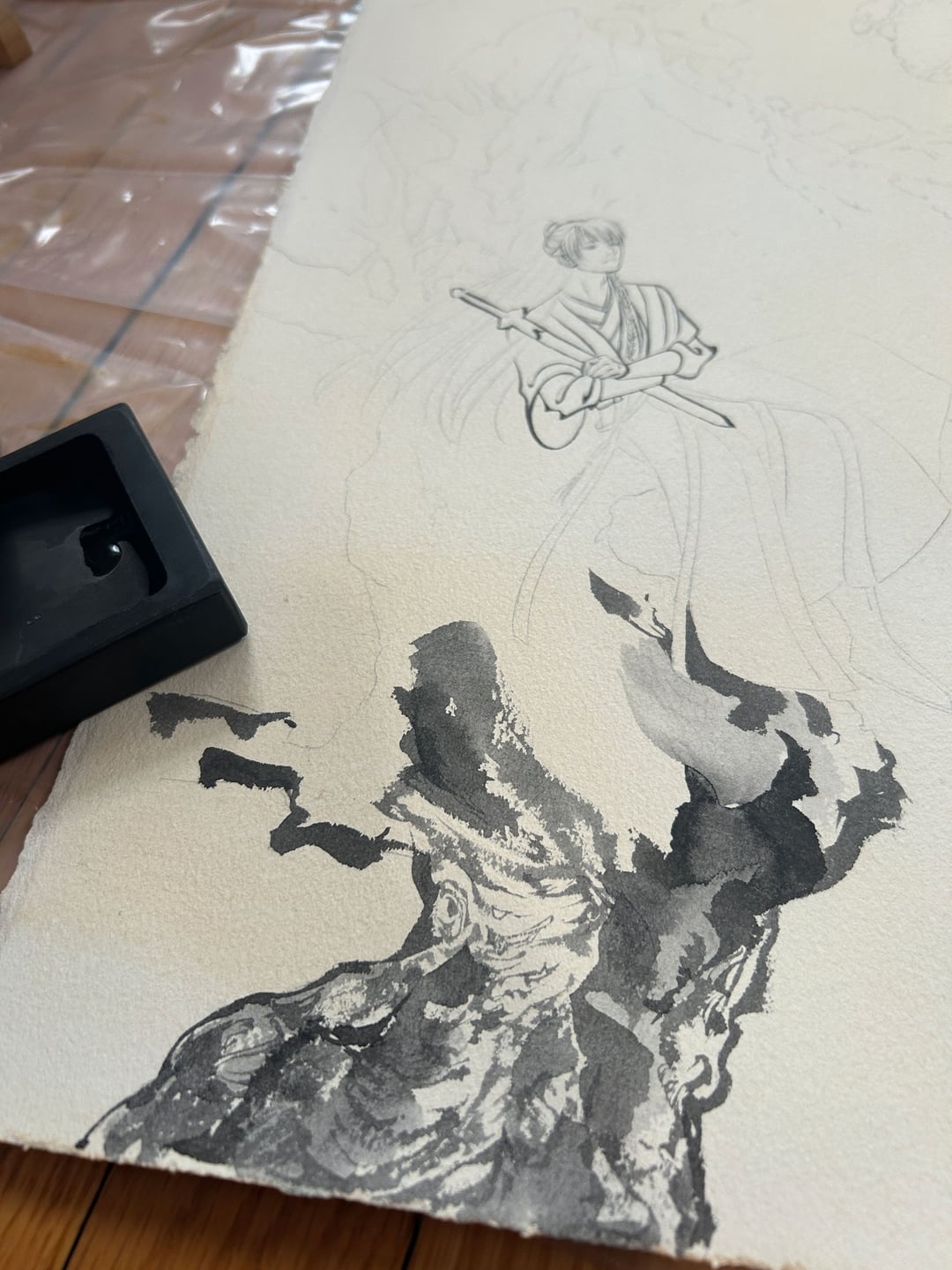 原画は30"×22" (76cmx56cm) 水彩紙にインクと水彩~