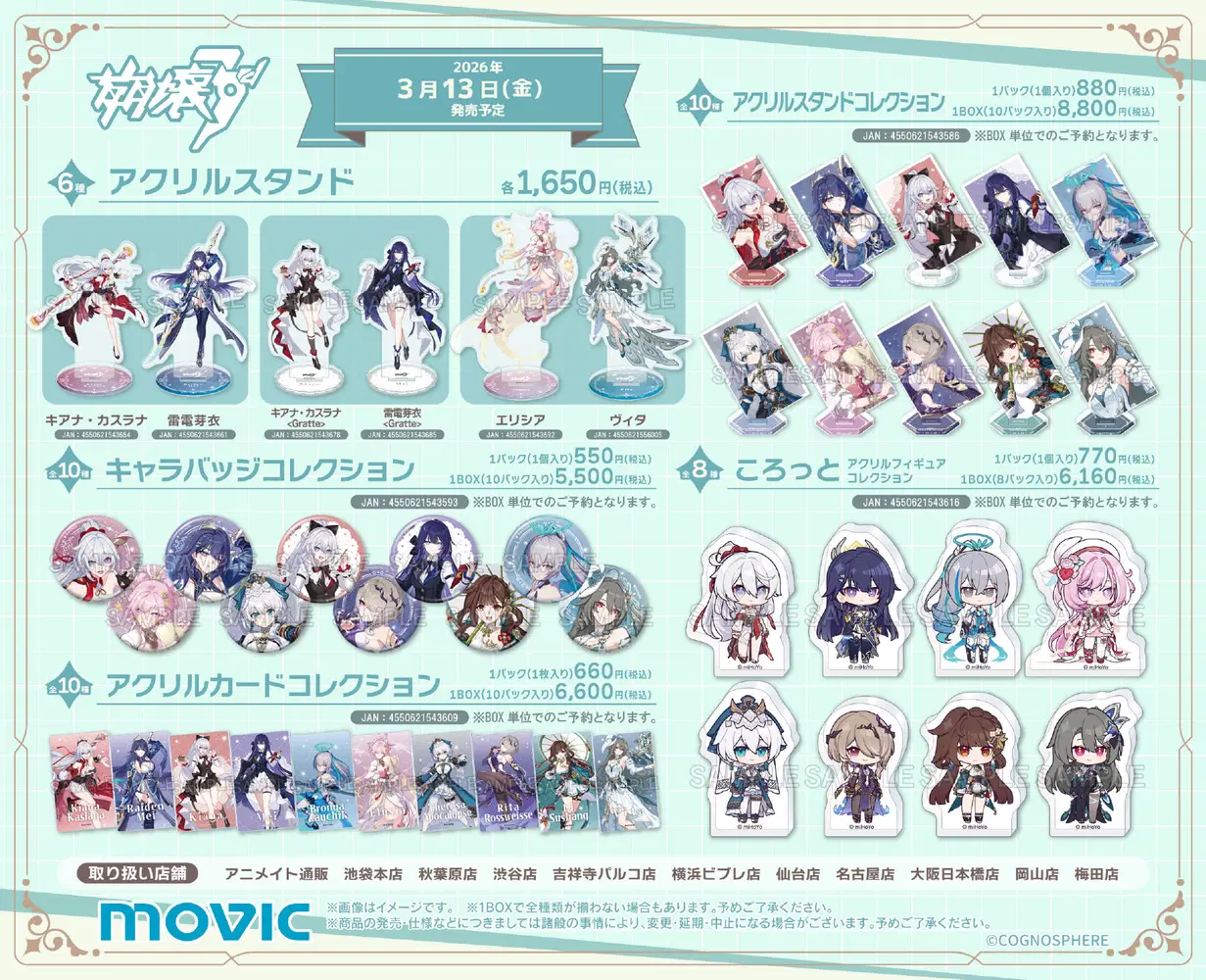 店内では、雷電芽衣とキアナの新規描き下ろし立ち絵を使用した特別グッズをご用意し、ここでしか味わえないキャラクターの魅力をお楽しみいただけます。