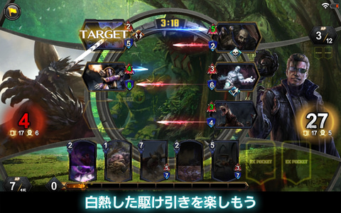 リアルタイムで時間が流れ、ヒーローアーツを繰り出していくなどアクション要素が強い頭脳戦は、本作ならではの大きな特徴の1つ。制限時間内に相手のライフをゼロにするスピード感や、アクティブレスポンスという打ち消しや強化を交互に行う駆け引きを行なうシステムは、格闘ゲームのコンボの応酬に近い感覚を楽しめる。