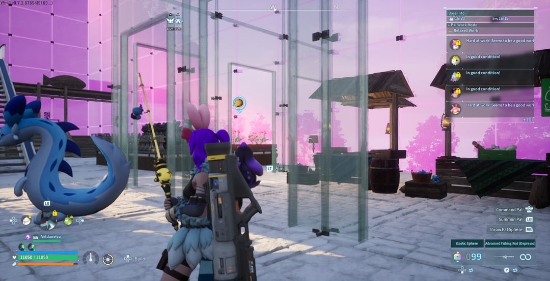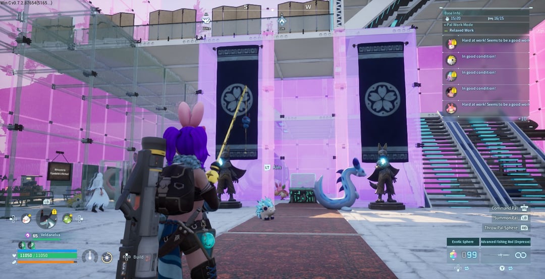 この構造は、床に「大理石のタイル」のような外観が欲しかったので、石の基礎の上に 12 x 12 x 60 のガラスが建てられています。残りは、茶室用の和風の壁と礼拝堂用の石を備えた未来的な基礎セットで作られました。
