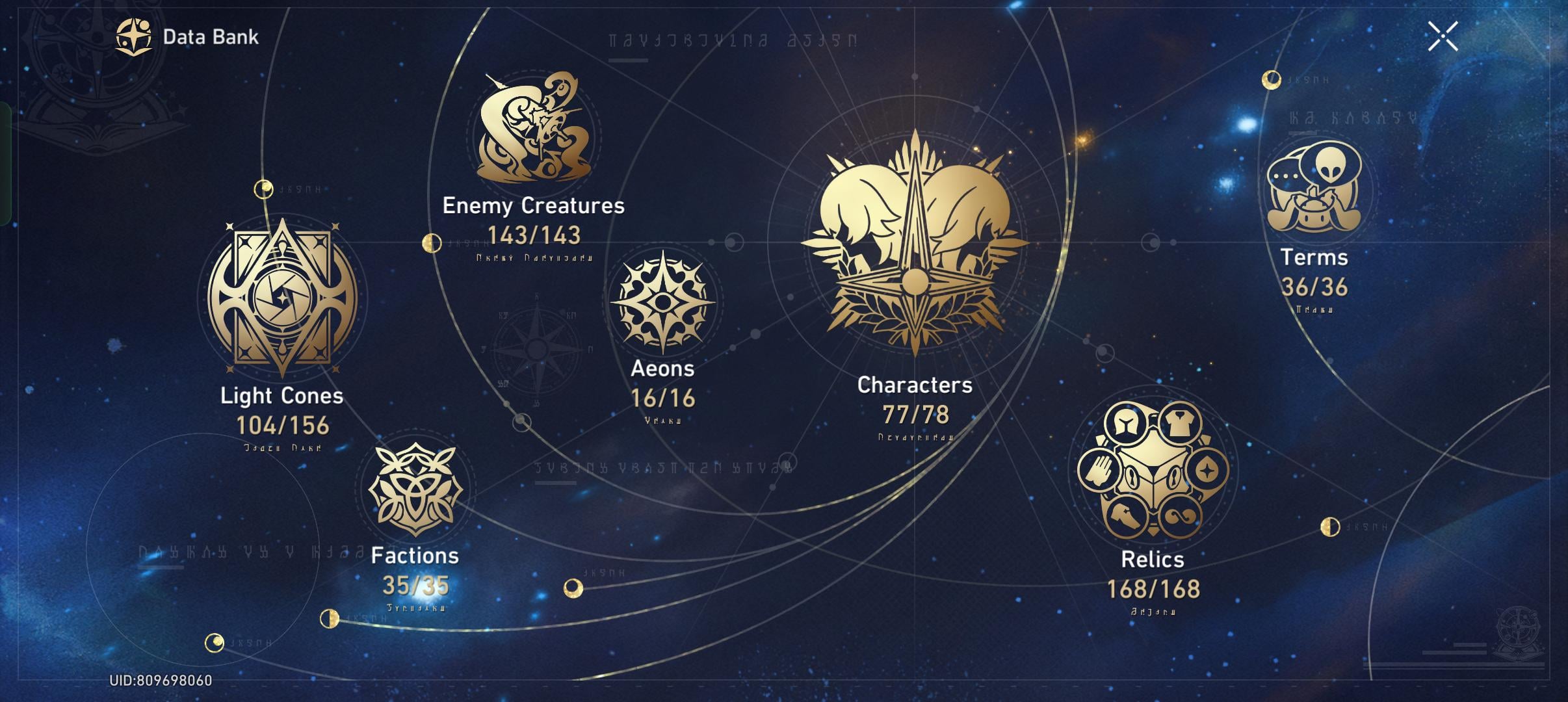 原神同様、キャラデータバンクもほぼ完成しました。全キャラ揃えるのは難しいので達成だと思います。そして私は決してクジラやリヴァイアサンではありません。私はどちらかというとイルカ派です(ウェルキンスで、時々BPをしてダブルチャージを買うだけです)。