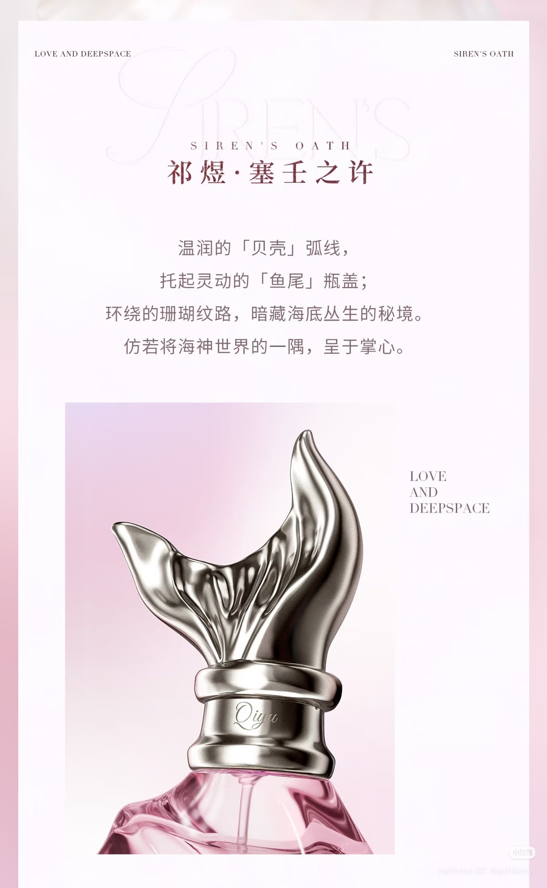 独占的な香水 "Qi Yu・セイレーンの誓い" からの "抱きしめて憧れる" シリーズは、Qi Yu 2026 の特別な誕生日デザイン製品です。ボトルのデザインは、深海を貫く太陽光の移り変わる光と影からインスピレーションを得ており、深海と熱い炎が流れる勾配の潮流に溶け込んでいます。
