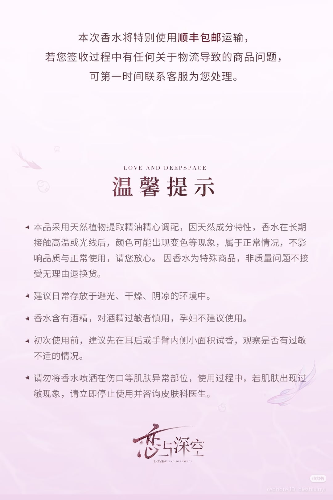 ※こちらの香水はSFエクスプレスでの発送となります。受け取り時に物流に関する製品の問題が発生した場合は、直ちにカスタマーサービスにご連絡ください。