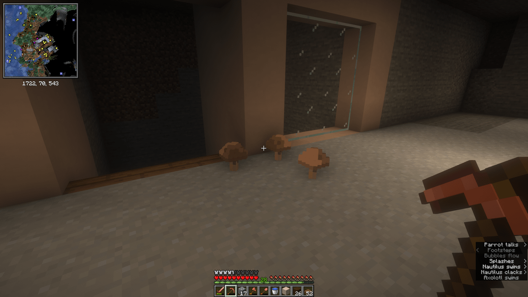 最初の写真でわかるように、どこからともなく床にキノコが 3 つあります (0 個も置きました) 木を切りに行って戻ってきたら、4 つありました (2 番目の写真)