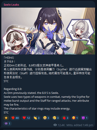 [8.8 Beta v1] Seele (より良い) カラーレンダー + 彼女の武器 + 初期 8.9 情報 (STC)