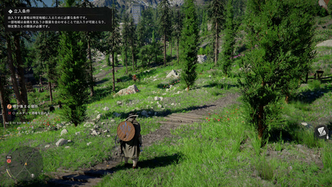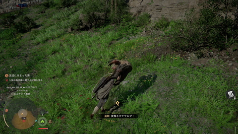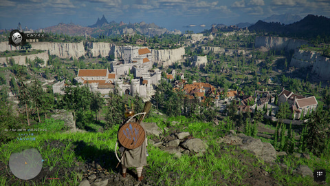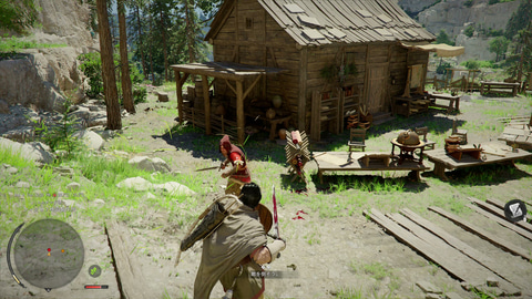 最初に興味深いと感じた要素は、視点変更の機能。「紅の砂漠」は基本的に三人称視点(TPS)で進行するが、探索時のみ一人称視点(FPS)に変更できる(戦闘時は三人称視点固定)。