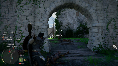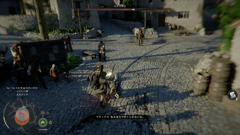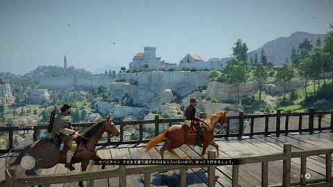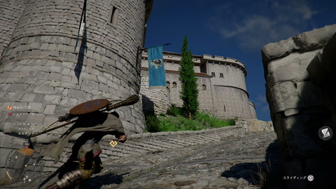 個人的に面白かったのが、どんな壁もよじ登れる仕様。切り立つ崖だけでなく、城壁や家屋の壁も対象になっていて、フリークライミングの感覚で登れるのだ。あるクエストで警備が厳重な城に潜入することになるのだが、筆者は城壁をよじ登って城内に入るというゴリ押しプレイを行った。その結果、城内の警備兵に追われる羽目にはなったのだが……(一応クリアはできた)。