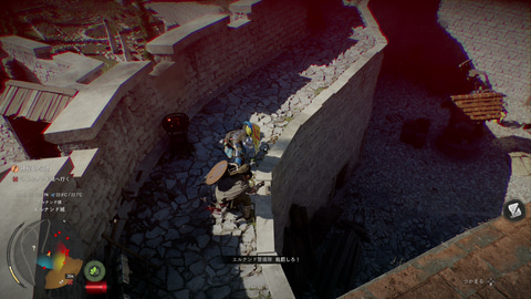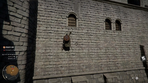 城壁をよじ登っている様子。スタミナが切れないよう注意しながら、上へ上へと登っていく