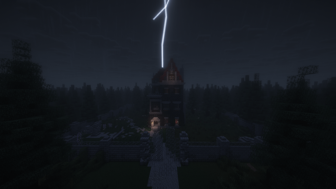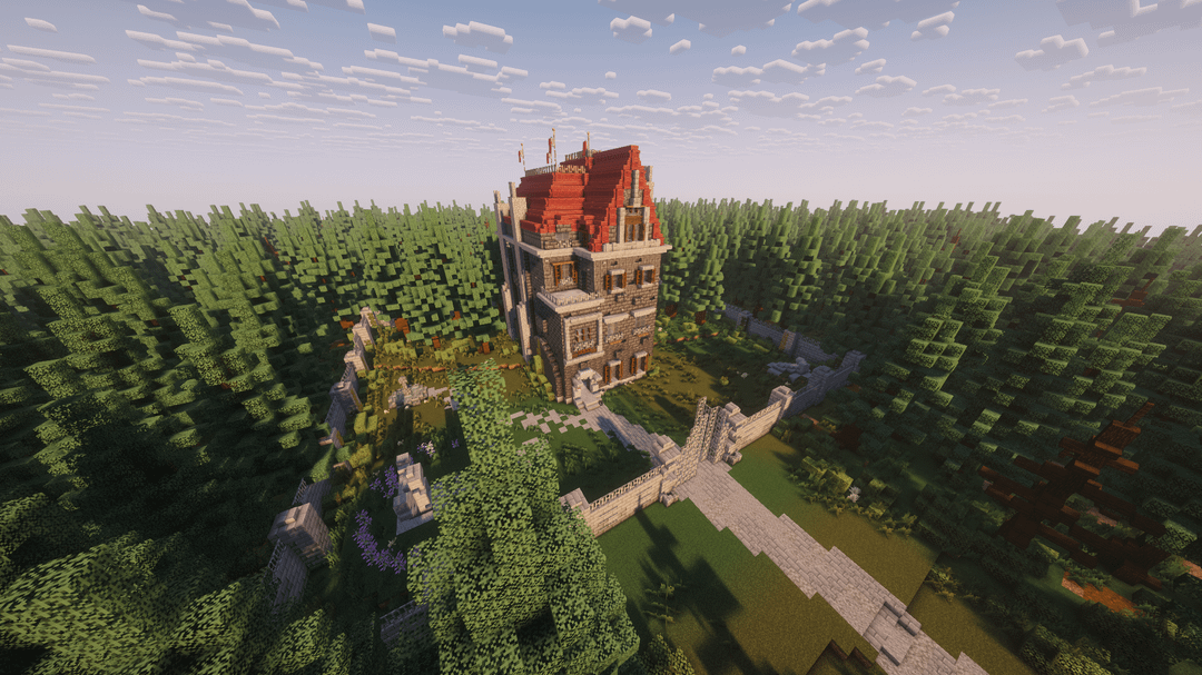 私の最初の本格的なビルド、完全に装飾されたインテリア、カスタム Terraform。秘密の扉とその下に広大なダンジョンがある探索に最適なマップ。