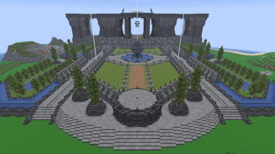噴水を並べて作ろうと思ったのですが、寺院の側面にある噴水ではやりすぎかもしれません。私が考えていたもう 1 つのアイデアは、迷路タイプの庭園を作ることでしたが、それが寺院の両方の部分に似合うかどうかはよくわかりません。まだどうするか考え中ですが、とりあえずは良さそうです!