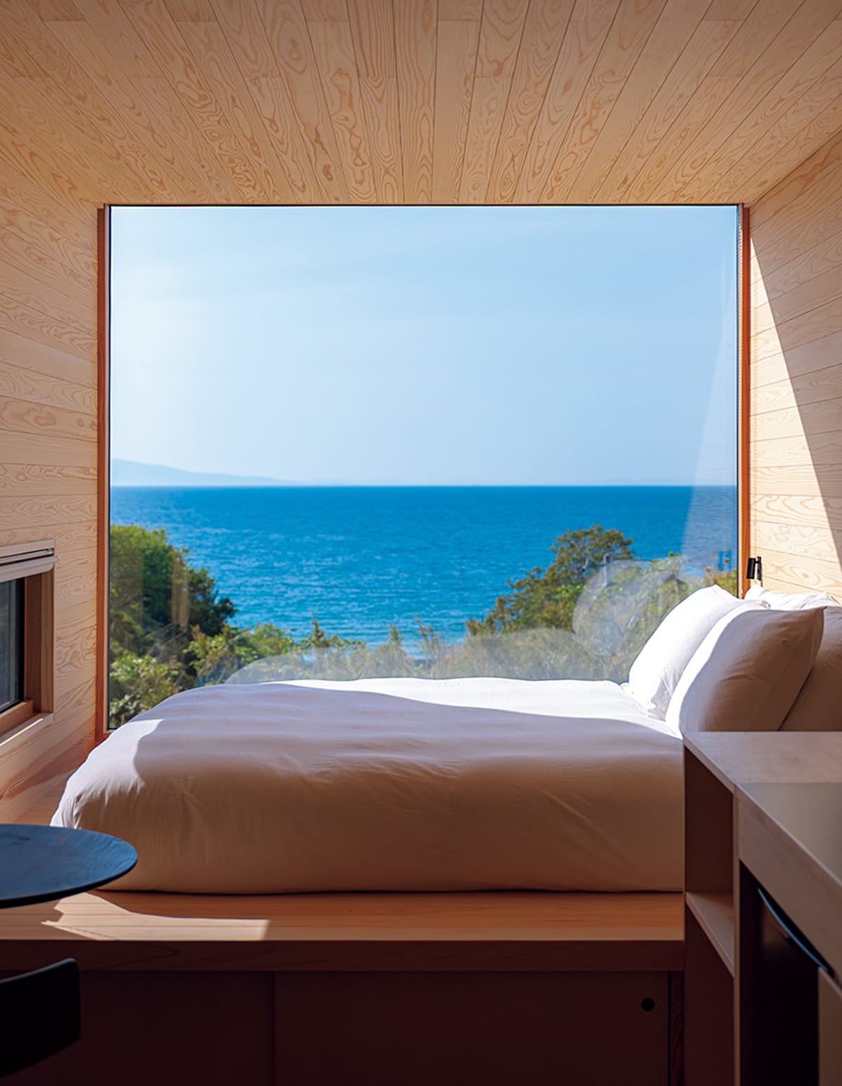 宿づくりにおいても環境配慮が徹底されていて、使用した木材はすべて高知県産。伐採・製材・加工・搬入を半径20km圏内で完結させ、運送によるCO₂排出量を最小限とした。さらに、プロジェクトに関わるのは、地元のデザイナーや大工、林業従事者ら。地域一体となって、林業やモノづくりを盛り上げる狙いもある。