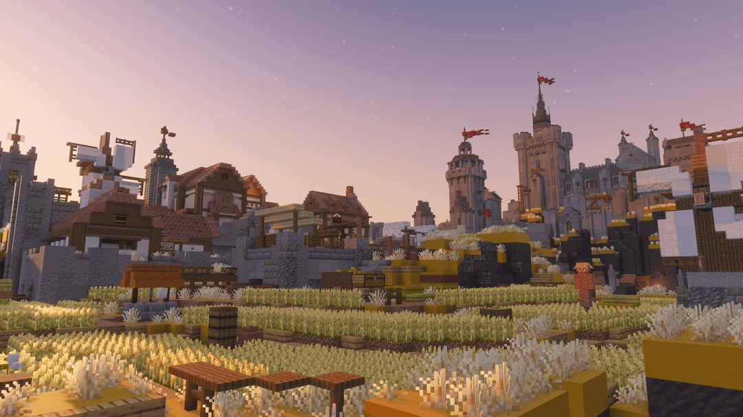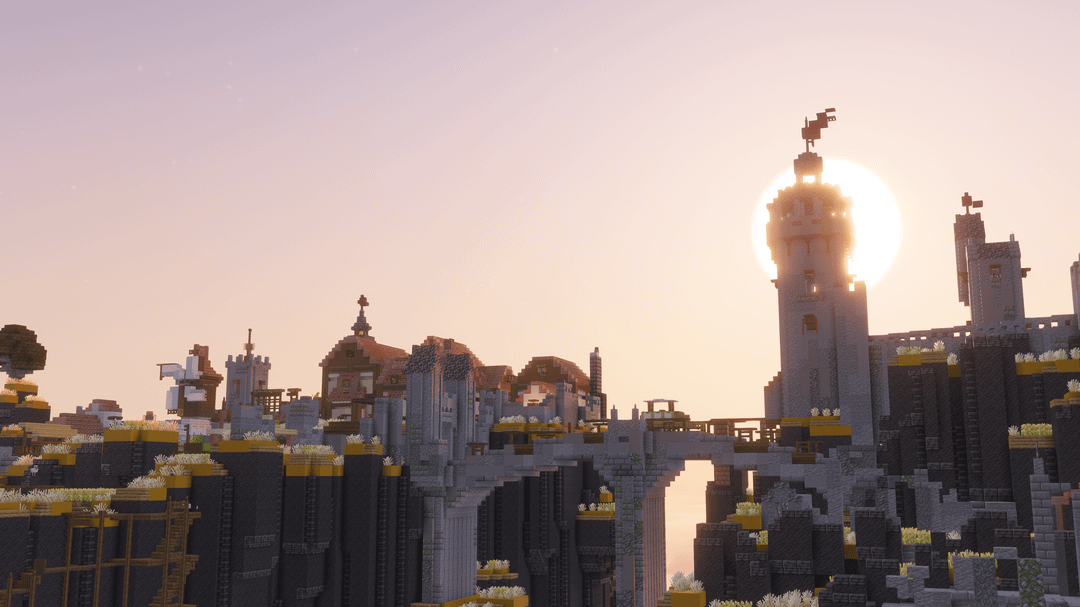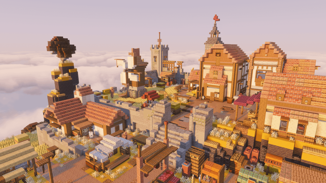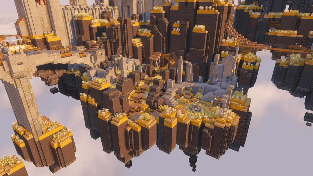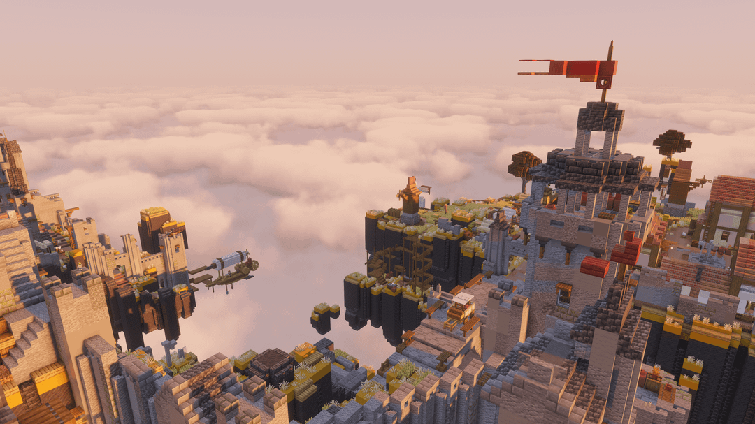 しばらく取り組んできたプロジェクト。浮島、城、小麦畑、中世の市場、飛行船のドック – すべては霧の上の橋とアーチで結ばれています。 KAIZEN87 x Baziza によって構築されました。 by Kaizens87