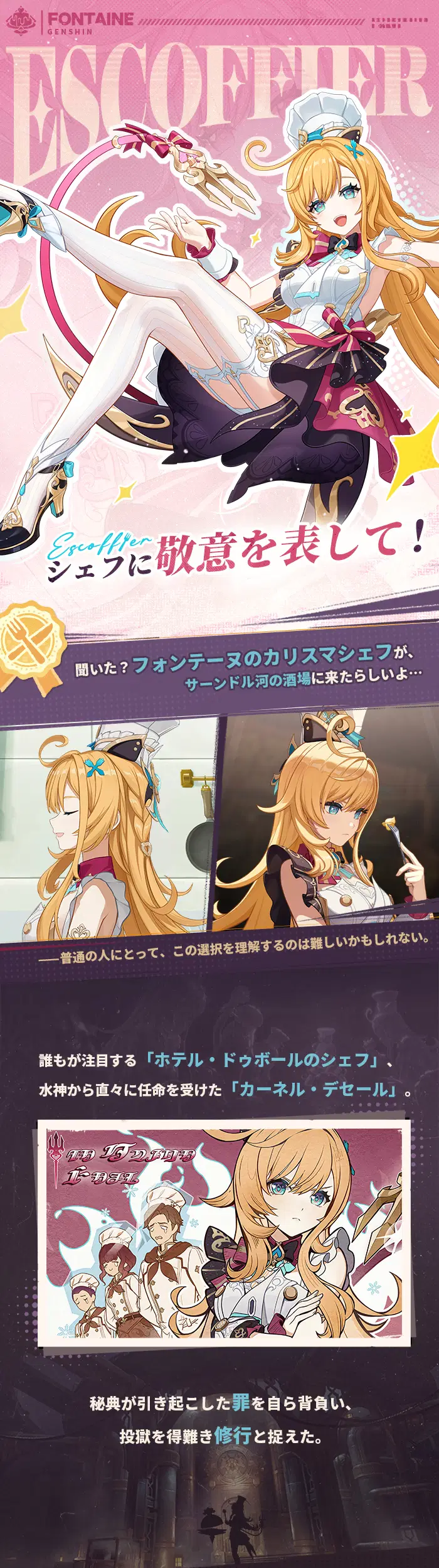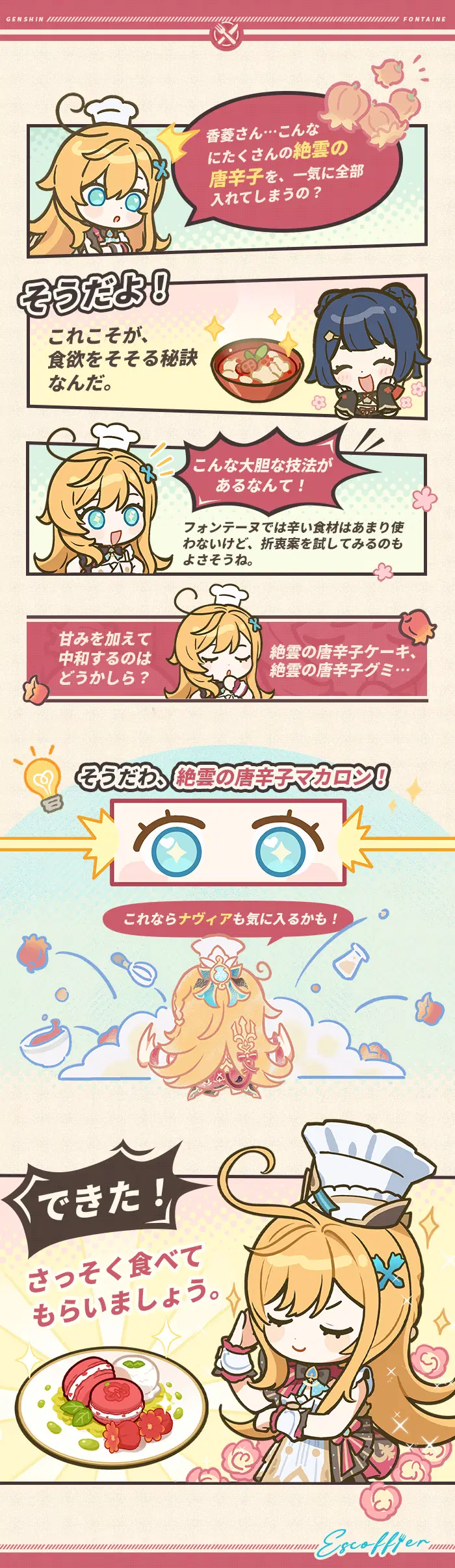 旅人さん、こんにちは!今回はシェフのエスコフィエさんをお招きしました。腕前を武器に、経験という素材に真心を注ぎ込み、多くの料理の真髄を見出してきたそうです。彼女のメモを一緒に見てみましょう~ イベント祈願「苺色のシャンソン」は2026年3月17日19:00より開催!イベント期間中、限定★5キャラクター「絢爛のフレーバー・エスコフィエ(氷)」の出現確率が大幅にUP!