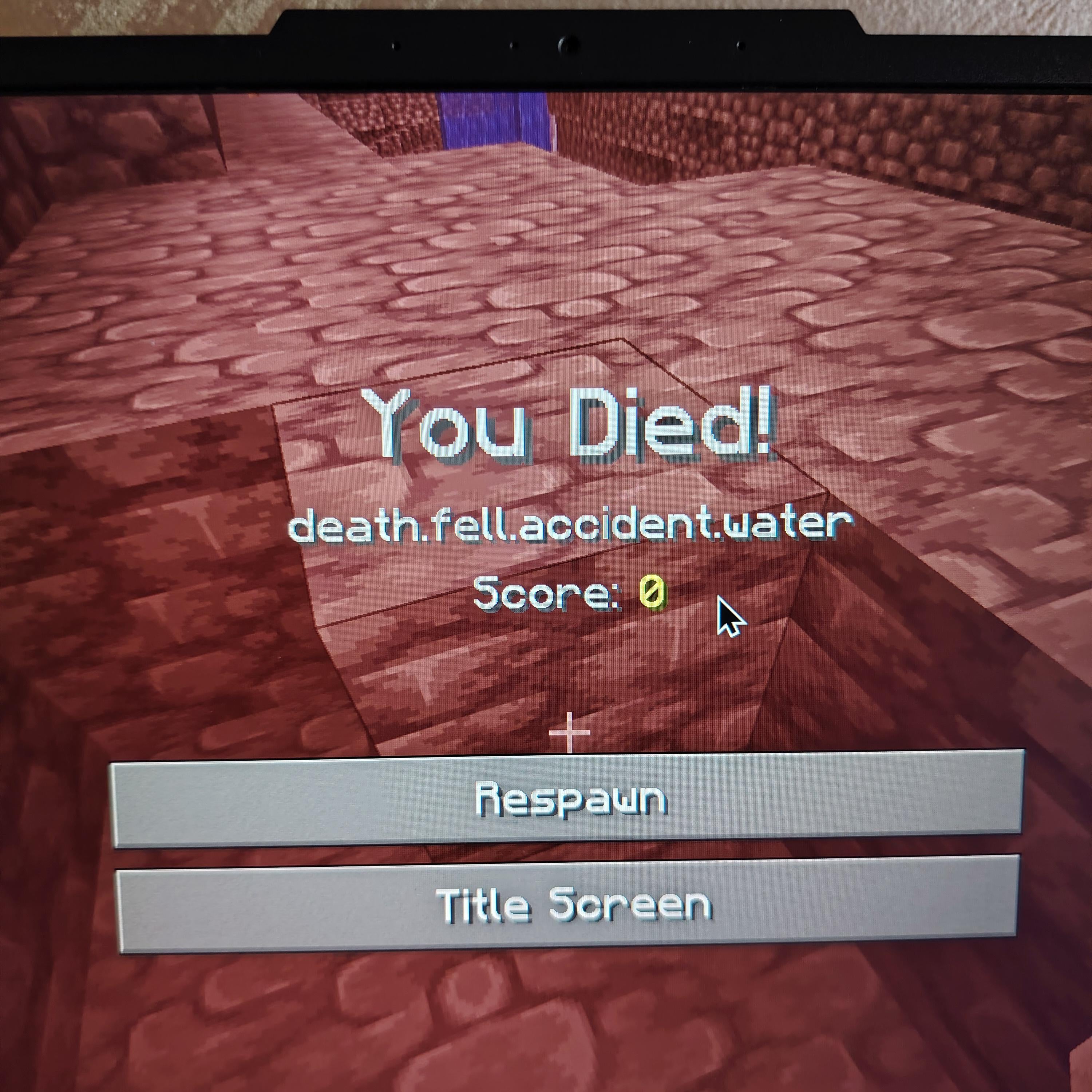 鉄のつるはしだけでダイヤモンドを見つけようとして、スケルトンから逃げるためにエンダーパールを投げ、水を通って天井まで真珠になり、落下ダメージで死亡しました