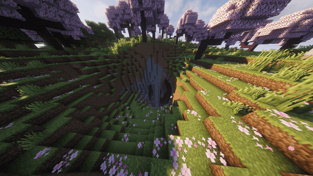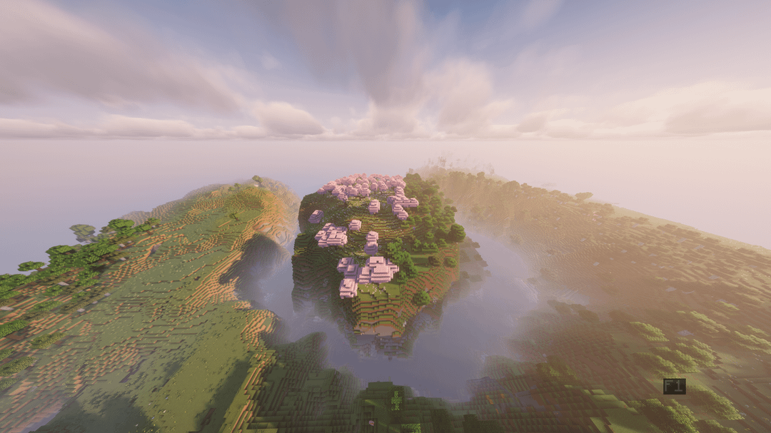 これは私が初めて永遠の世界を作ったときにもらった種です。あなたは川に囲まれた桜の丘(残りの半分は森)の中にスポーンします。丘の周りを川が流れているため、丘には大きな崖があり、橋を架けるのに適しています。丘の真ん中には洞窟が開いています。スポーンからそれほど遠くない村が北と南の両方にあります。