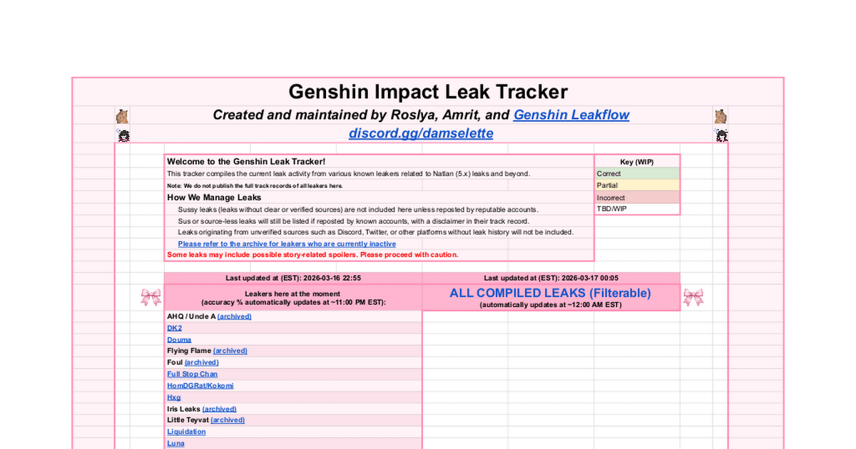 ✧ リークトラッカー (さまざまなリーカーからの記録の記録)