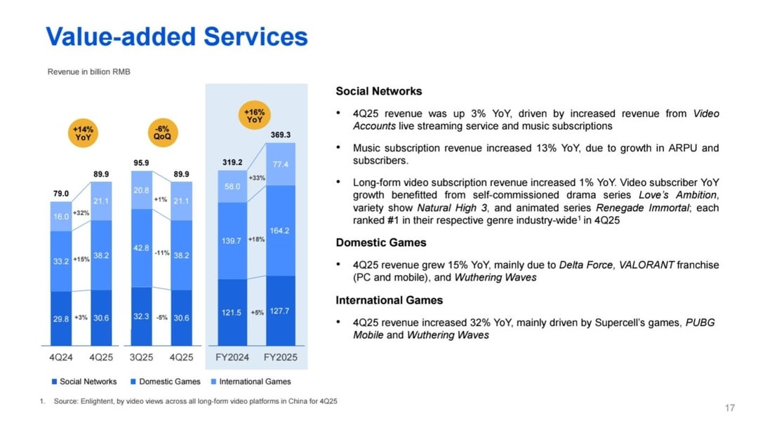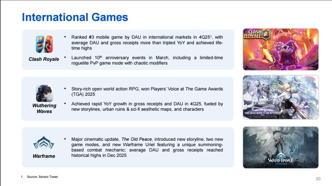 テンセントの最新収益報告書では、Wuthering Waves が 2025 年の国内ゲーム部門 (+15%) と世界ゲーム部門 (+32%) の両方での急速な成長に大きく貢献したと認定されました。 by Rock3tPunch