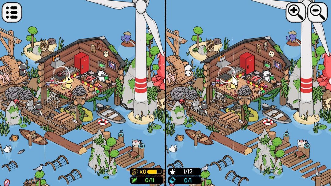 本作には12エリア各7ステージの計84種のステージが存在。バラエティーに飛んだステージにはどこかで見たことのあるゲーム機やオブジェクトなど、小ネタも仕込まれている。また、3種類の難易度が設定され、難易度ごとに配置が異なるためステージ数以上のボリュームだ。とはいえ、莫大なステージを攻略するなかでプレイヤーがマンネリを感じないような工夫もみられる。オブジェクト探しとは異なる間違い探しのステージが用意されているほか、カードやシールといった収集要素も存在。バリエーション豊かな物探し要素が用意されているというわけだ。公称では1000を超えるアイテムを20時間以上探せるとアピールされている。