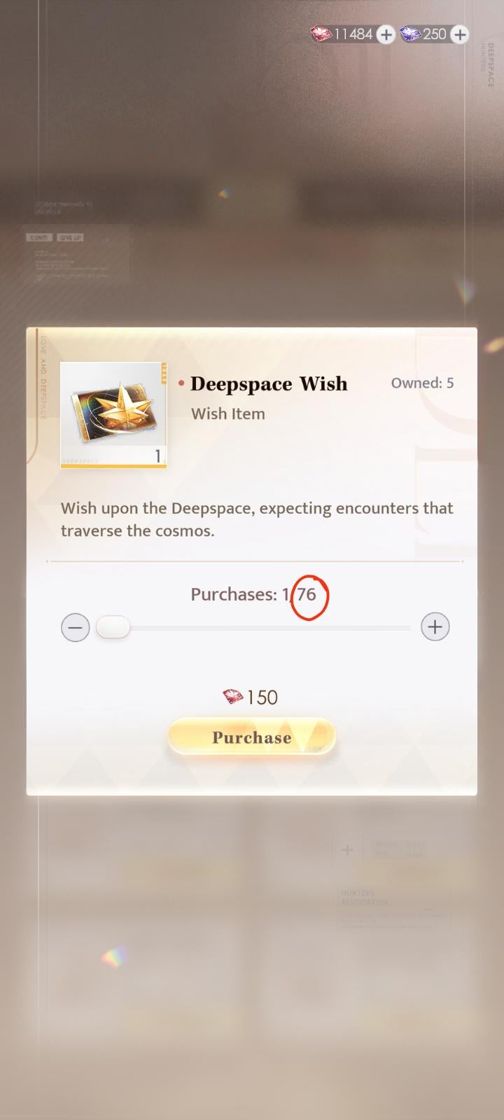 5.1. (オプション) 現在所有している Deepspace Wish の数に追加します (右上に表示されます -> "所有数:5")。