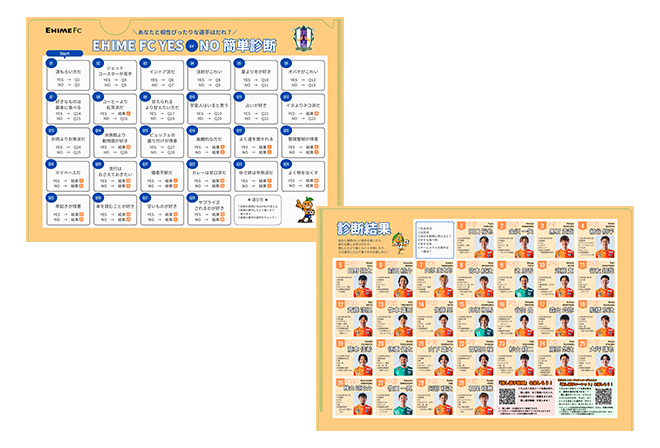 あなたの推し選手を見つけよう!選手相性診断チャート付きクリアファイルを来場いただいた愛媛FCサポーター全員にプレゼント!