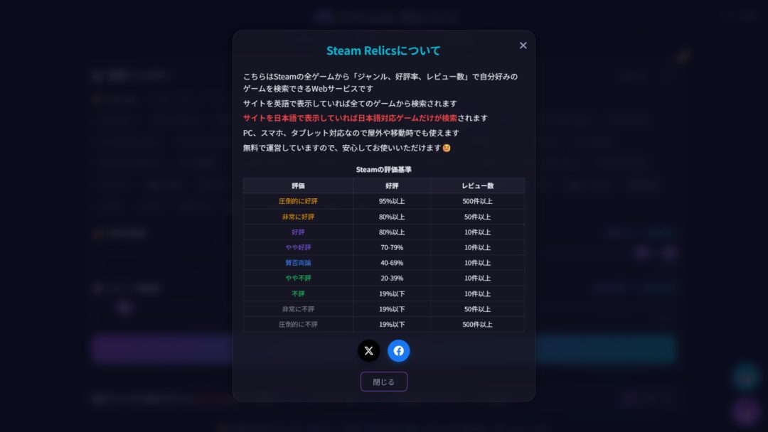 個人開発者のsowa氏は3月20日、ゲーム検索サービス「Steam Relics」を公開した。PCやスマートフォンのWebブラウザから無料で利用可能だ。