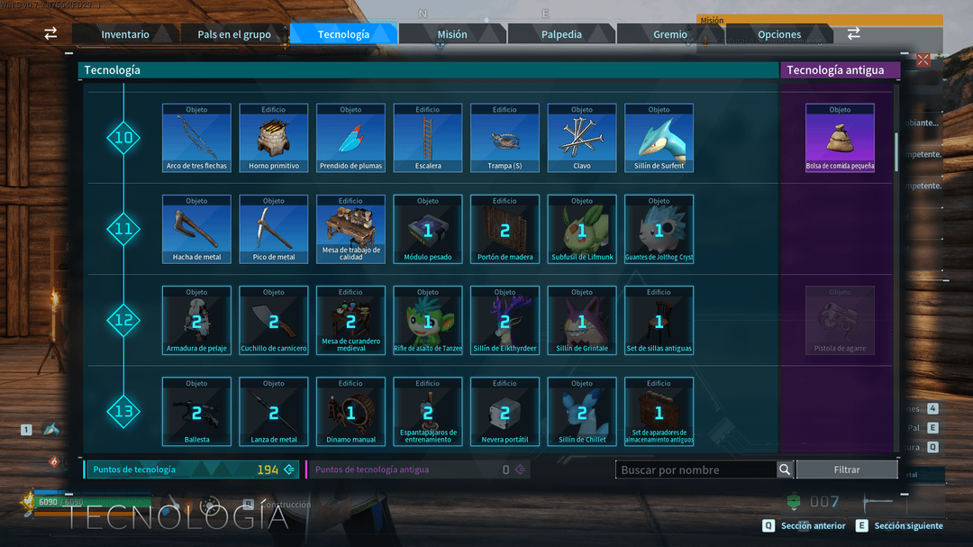 * 次のテクノロジーに進む前に、テクノロジー ツリーの順序に従い、1 つのテクノロジー内のすべてのアイテムを作成する必要があります。