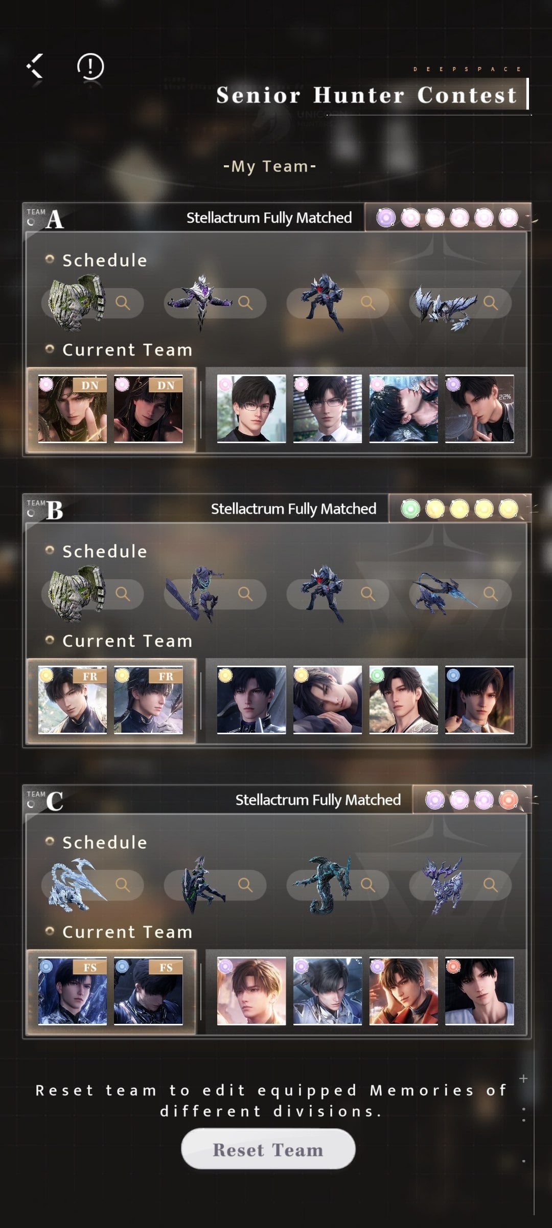 私は 7 か月半プレイしていますが、低支出者としては 1 年近くかかると思っていたので、入手できたことを本当に誇りに思います。チーム B は間違いなく最も困難でした。メモリをアップグレードし、より良いプロトコアを得るために非常に多くのリソースを使用する必要がありました。チーム A は簡単でしたが、チーム C はうまくいくまでに数回のトライを要しました。